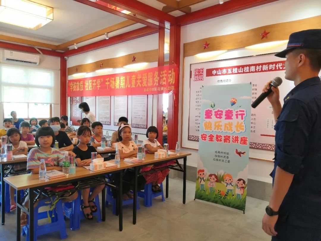 桂南村妇联7月25日,五桂山妇联联合区团工委、工会、桂南村妇联在桂南村新时代文明实践所开展“童安童行·快乐成长”安全教育活动。活动通过学习交通安全知识、消防安全知识、防溺水安全知识、家庭用火用电安全知识、疫情防控知识及现场知识问答互动等,进一步提高儿童的自我防范意识和安全知识,为度过平安、快乐的暑假打下坚实的基础。