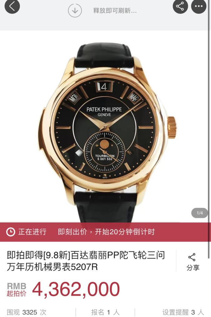 △一块百达翡丽陀飞轮表拍卖价高达436万