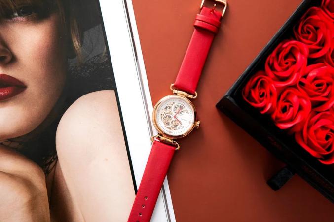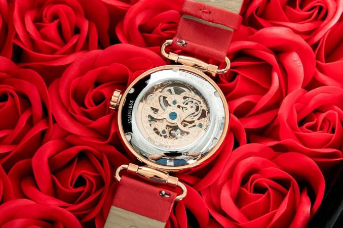 而且,这款手表的礼盒还非常有心思。上层掀开后,一朵朵盛开的红玫瑰便闯进眼帘,并弥漫着淡淡香气。