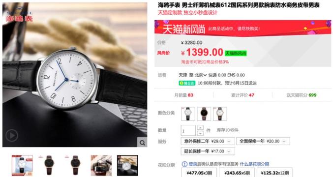 现在购买,天猫旗舰店活动价也要¥1575的「似水流年」男士表仅¥1099。过了这个村就难保还有这个店了。