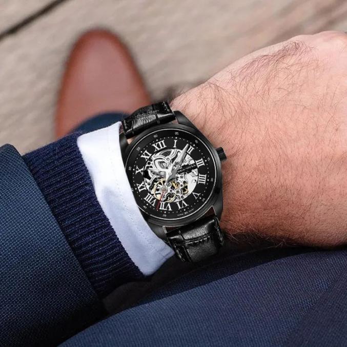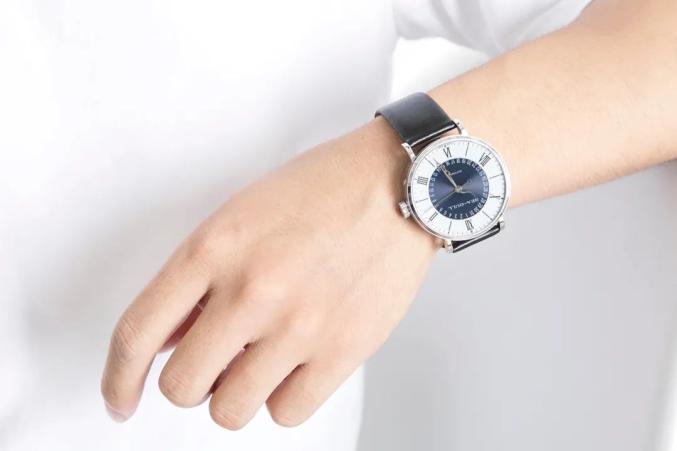 「国民系列」机械腕表,相较于精钢表带手表,看起来会更斯文一些。