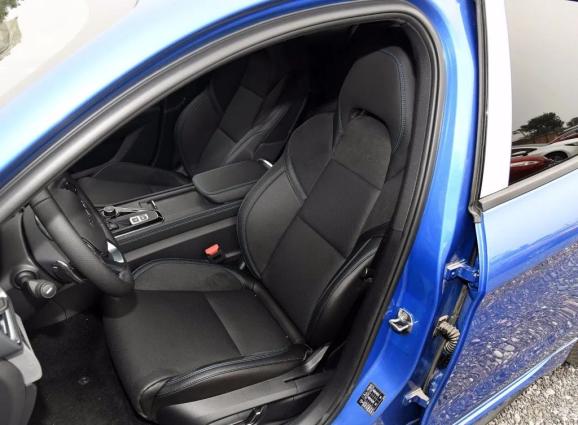 值得一说的是领克座椅的造型相当运动,有些类似赛车的桶形座椅,而且采用真皮与Alcantara材料相间的搭配方式,再加上红线缝制,确实很有运动氛围。而且舒适性也并没有因此而大打折扣,充足的填充物让座椅较为柔软,乘坐舒适性还不错。(但是运动座椅的厚度有些影响了后排乘客的空间)