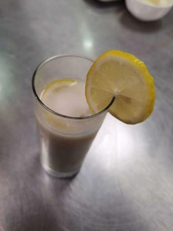 材料:柠檬2-3片、金桔2个、绿茶200毫升、酸奶150毫升、冰糖适量
