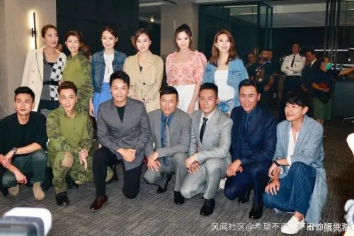 第二排左一为陈敏之 图自@张兆辉开机仪式后,陈敏之还与“丈夫”张兆辉一起拍宣传片为该剧造势。