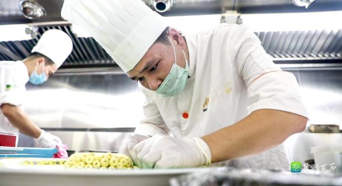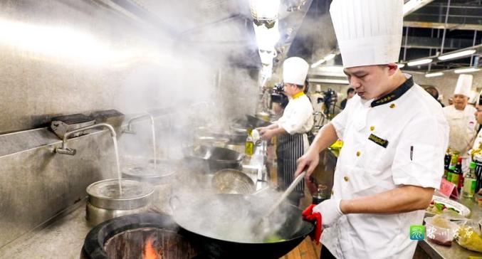 厨师代表在后厨大展身手,专业评委则在大厅认真品尝,从加工过程、烹调过程、文化内涵到色泽、造型、刀工、口味、营养卫生等方面,进行严格评选。