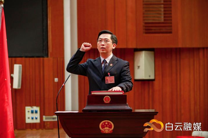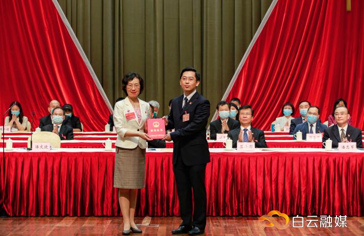 ▲广州市白云区第十六届人民代表大会第七次会议。当天上午,广州市白云区第十六届人民代表大会第七次会议举行投票选举,大会执行主席宣布当选名单,蔡鹏浩全票当选广州市白云区监察委员会主任。大会举行了宣誓仪式,广州市白云区人大常委会主任潘文捷为其颁发当选证书。