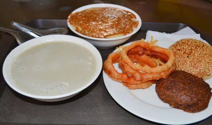 糖油饼、豆腐脑、羊杂汤、豆泡汤,牛肉包子...