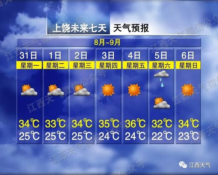全省晴天多云,其中上饶、抚州两市东部和鹰潭市局部