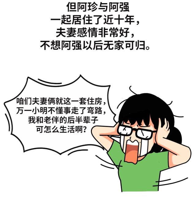 那这是不是代表阿强的居住问题无法保障呢?公证员询问阿珍,房子到底想遗留给谁,阿珍非常肯定地要将房子留给儿子小明,但却又担心配偶阿强的居住问题。