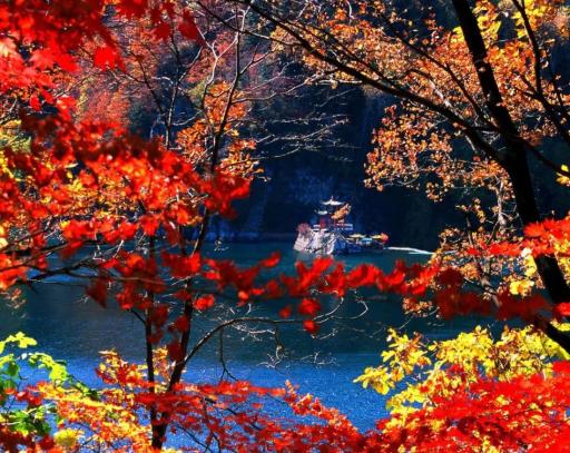 如果大龙湾称之为阔秀,那么三角龙湾就称为雄秀。沿岸曲折有致,壁险峰奇,水色碧绿深幽,具有雄秀之美。湖心有一小岛,如天外飞石孤立水中,白云碧水间,映霞壁、三剑峰、白龙泉等生态奇观将三角龙湾装点得如诗如画,景致据龙湾之首。午膳:龙湾
