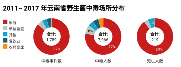 根据对2011-2017年云南蘑菇中毒情况数据分析,依旧是家庭为蘑菇中毒主要场所。下图所示: