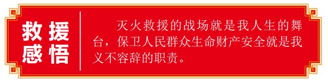 每一次抢险救灾,都是一场舍生忘死的考验。究竟经历了多少次这样的生死考验,马新文自己也说不清。“作为一名消防兵,灭火救援的战场就是我人生的舞台,保卫人民群众生命财产安全就是我义不容辞的职责。我多一分危险,群众就会多一分平安。”他始终把人民群众生命财产安全放在首位,刀山敢上、火海敢闯,不畏艰险、逆向前行,用实际行动践行着“人民消防为人民”的铮铮誓言。