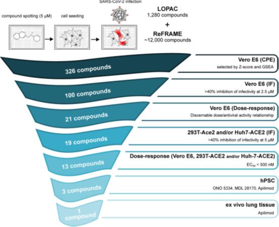 这些药物都能够抑制病毒的复制,从而缓解病毒感染细胞。通过对其中最有潜力的三种药物ONO 5334, MDL 28170以及阿匹莫德的体外细胞实验发现,阿匹莫德能够降低85%的感染细胞数量,ONO 5334和MDL28170使细胞感染数量分别降低72%和65%。