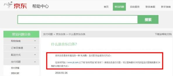 京东白条是京东推出的一种“先消费,后付款”的全新支付方式。在京东网站使用白条进行付款,可以享有最长30天的延后付款期或最长24期的分期付款方式。