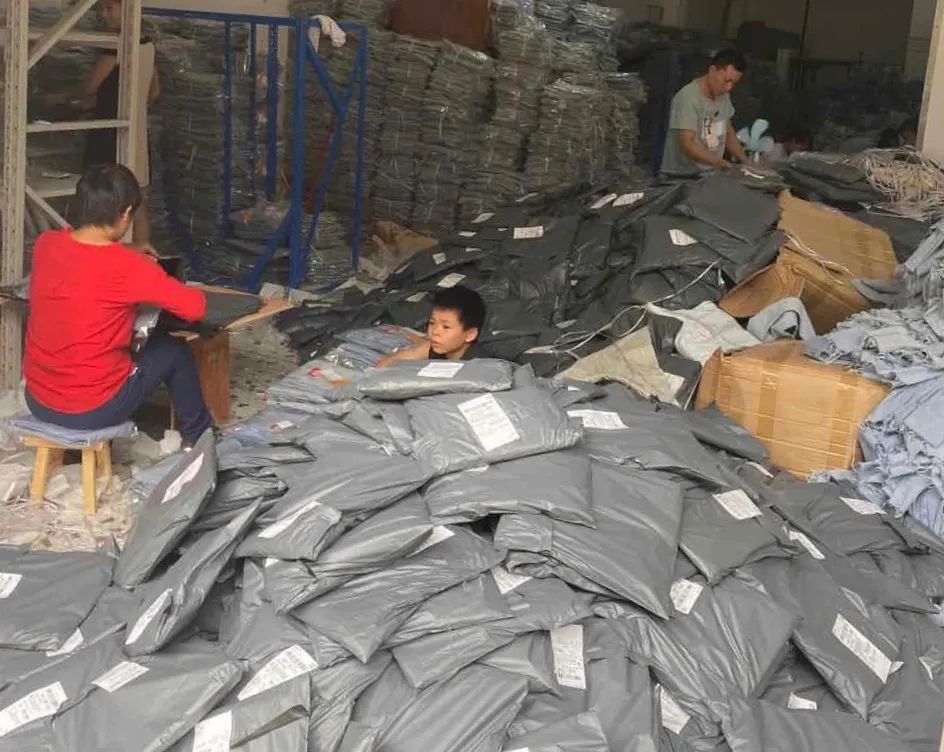据说在巅峰时期,每天有50多万条裤子从这发出,当地街头,每隔几米就是一个牛仔裤厂。