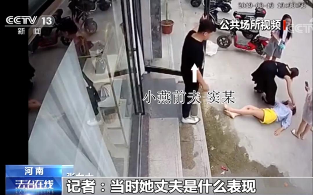 小燕:2018年4月的一天晚上,当时他第一次打我打得也挺狠,抓住我的头发,把我狠狠甩在地上。我当时滚了三四米远。他还用手用力捶我的后脑勺,踹我的肚子。