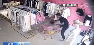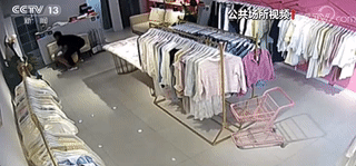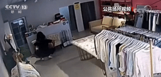 丈夫突然闯入服装店,开始殴打妻子