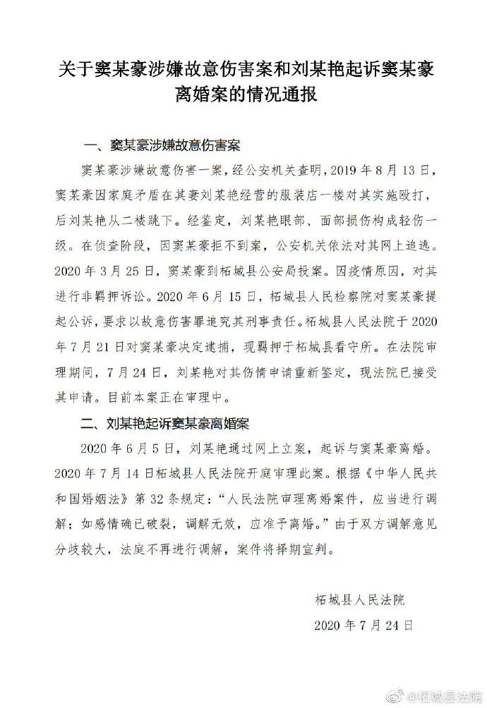 7月28日,柘城县人民法院对这一案件作出准予离婚的判决,这一纸判决对小燕来说意味着解脱,窦某则表示将提起上诉。