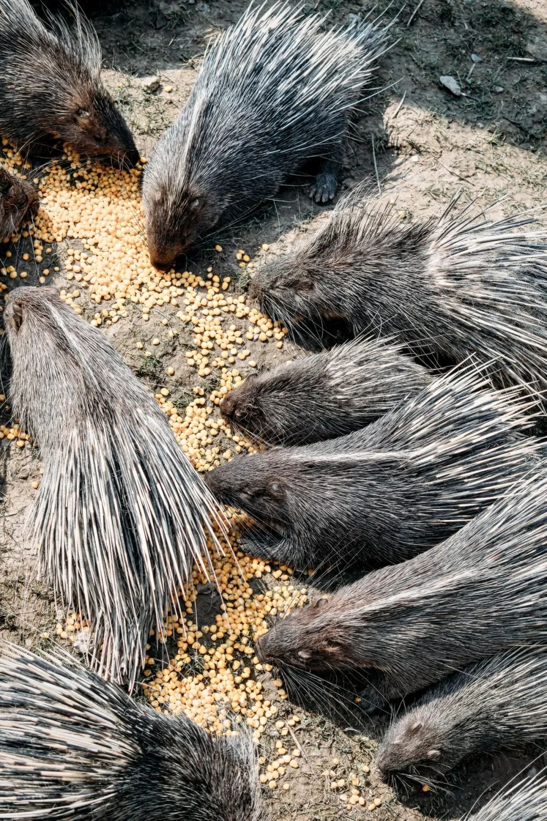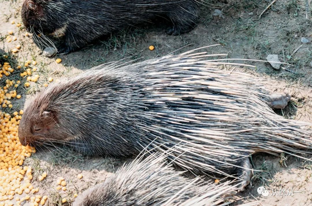 索性趴着吃的豪猪但豪猪是地地道道的啮齿动物,仔细观察它们,啮齿动物的特征都很明显,和偶蹄目的猪毫无关联,属于广义上的大老鼠。