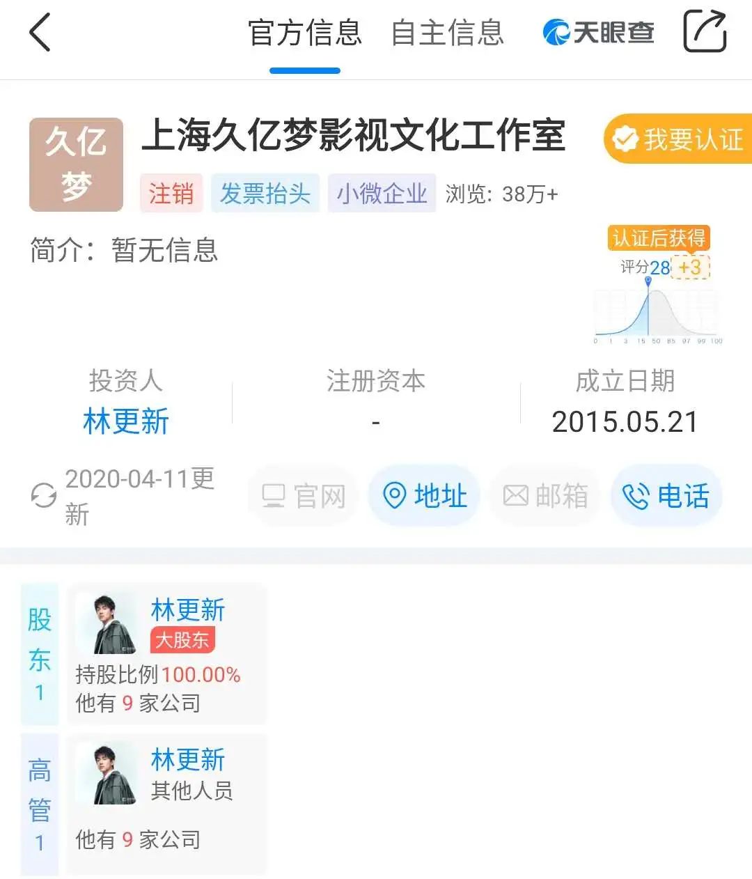 也许为了彰显粉丝对自己的爱,林更新在公司名字上也用上“久亿梦”代指九亿少女的梦。