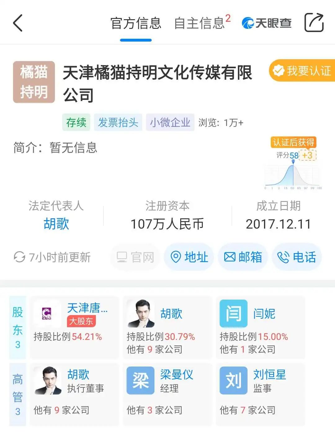 比如胡歌就把自己最喜爱的宠物橘猫写在了公司名字中,真是铁杆的爱猫人士。