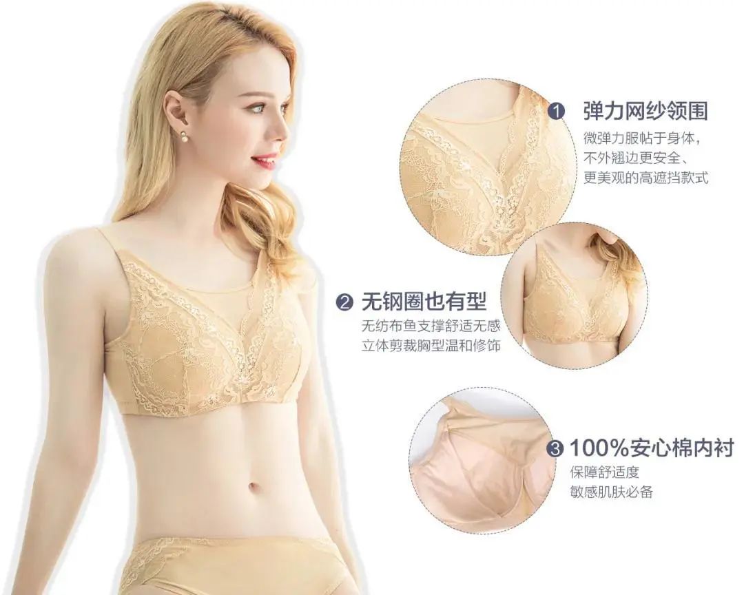 胸罩的舒适度也需要考虑,一般都是无钢圈的,避免过硬的钢圈刺激伤口,肩带加宽,减轻肩膀的压力。