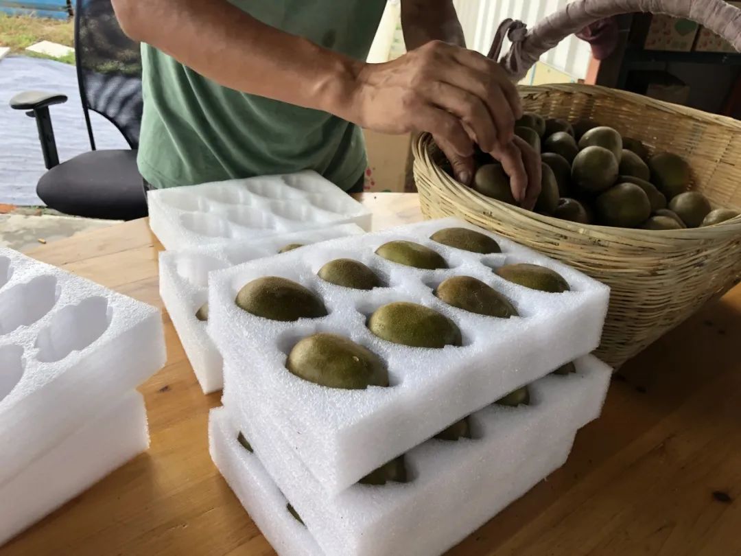 由于基地一直坚持生态有机种植模式,种植出来的猕猴桃果皮光滑无毛,撕开薄皮,黄绿色的果肉散发出诱人的香味,鲜果横剖面沿果心有紫红色线条呈放射状分布,似太阳光芒四射,色彩鲜美,口感更是细嫩、清甜,销路非常好。近年来,基地销售订单逐步增加,特别是这两天,每天都有五六百盒的销售量。