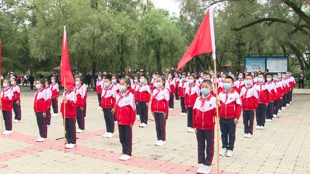 少先队员献唱《我们是共产主义接班人》。