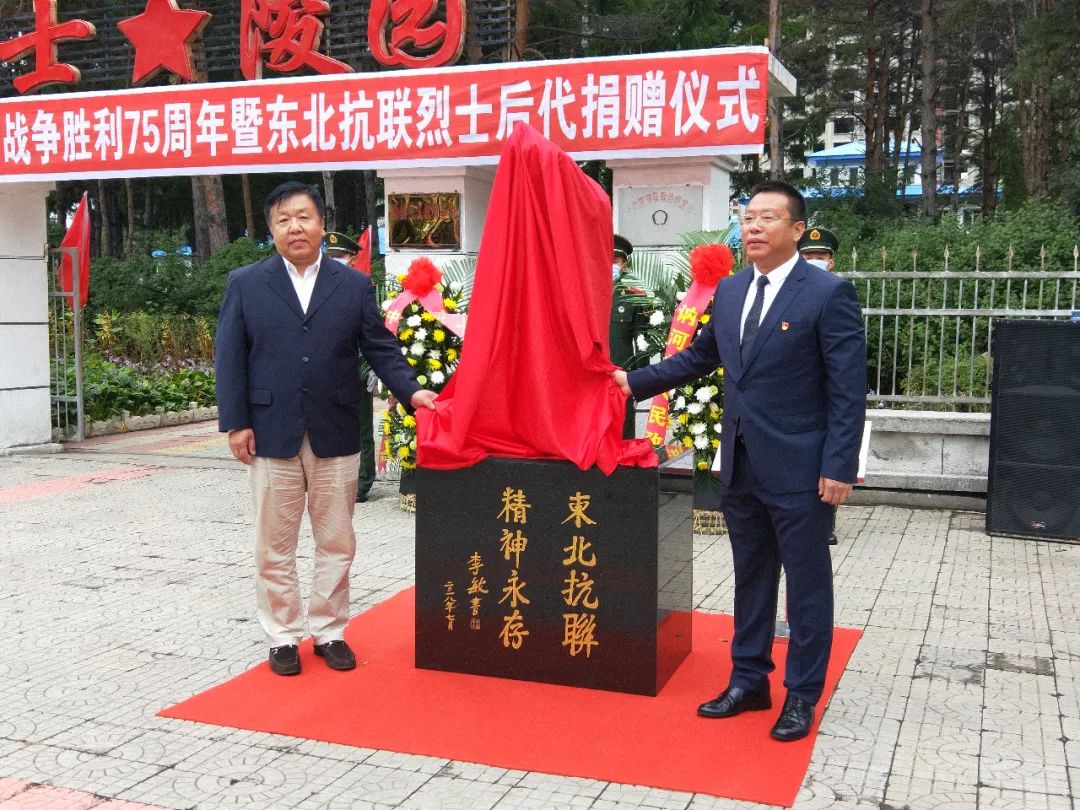 天地英雄气,千载尚凛然。今年是中国人民抗日战争暨世界反法西斯战争胜利75周年。9月3日上午,讷河市在烈士陵园门前,举行中国人民抗日战争胜利75周年纪念活动暨东北抗联烈士后代捐赠仪式,缅怀先烈,回望历史,激发全市人民弘扬革命精神,为实现中华民族伟大复兴而努力奋斗。温和、翟伟、李传柱、王敏等四个班子领导和在职副县级以上领导参加活动。
