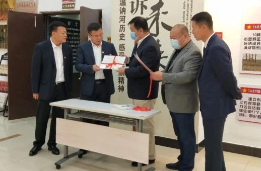 市委书记温和与东北抗联烈士后代刘晓明为胡杨树标本揭幕。温和为刘晓明颁发了捐赠证书。