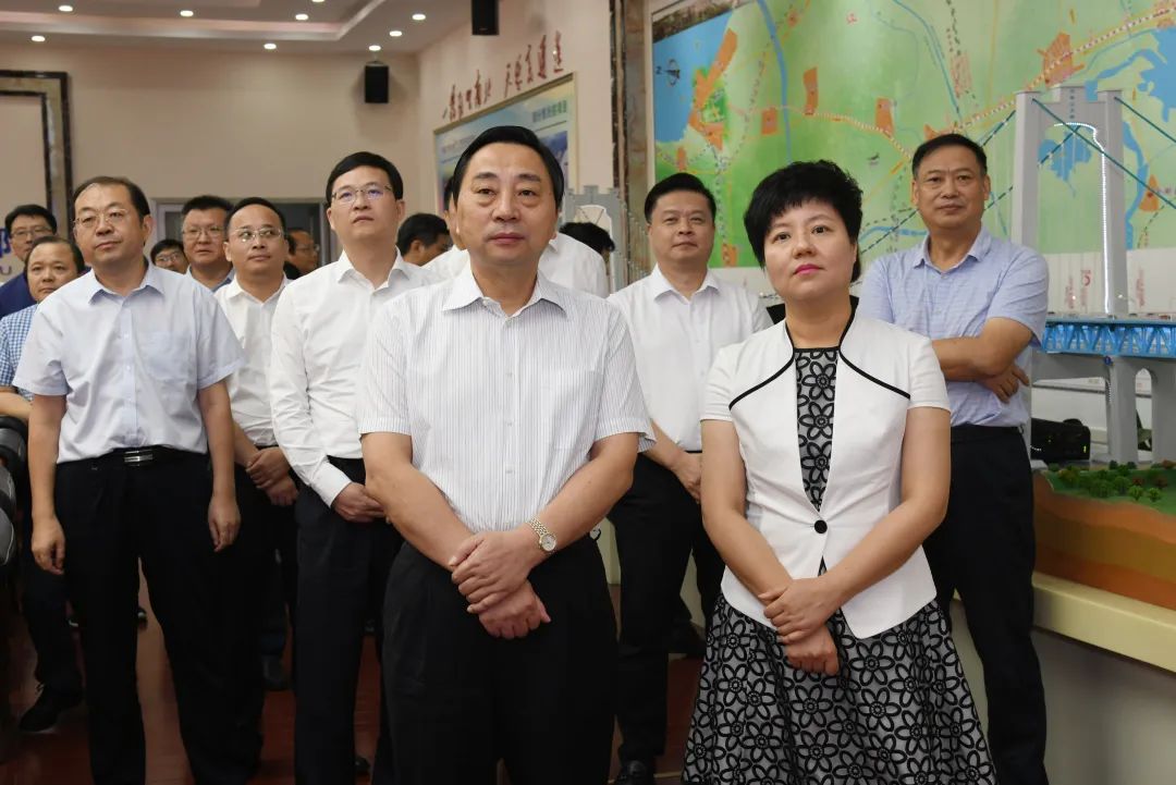 代表团一行来到江边现场察看五峰山长江大桥建设情况。作为连镇铁路的控制性工程,五峰山长江大桥是世界首座跨千米级高速、重载公铁两用悬索桥,也是江苏境内继南京长江大桥和刚开通运营的沪苏通长江大桥之后的第三座长江公铁两用“跨长江通道”。在工程项目部,代表团观看了大桥建设宣传片,并对照模型详细听取大桥有关设计理念、结构性能、科技含量和施工工艺等情况介绍,对项目部在施工建设过程中发扬攻坚克难、永攀高峰的精神予以赞赏,希望随着大桥建成,后续连镇铁路正式全线开通运行,全力加速构建苏北快速铁路网,推动苏北加速融入长三角一体化,实现融合发展。