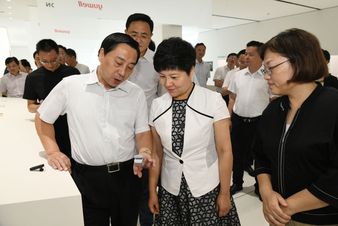随后,代表团一行来到江苏鱼跃医疗设备股份有限公司。鱼跃医疗已经成为中国最大的医疗器械跨国集团之一,产品覆盖医学影像、医用耗材等六大板块。目前鱼跃与阿里云达成战略合作,构建工业互联网,全面实现企业上云,打造具有柔性、智能、精益化生产能力的智能工厂。代表团一行察看指挥中心数据管理平台的实时运行状况,走访产品展示中心,听取产品性能介绍,并实地考察相关实验室,充分肯定鱼跃秉持工匠初心,坚持发展实业的决心和定力,认为鱼跃大力开展科技创新,推动新一代信息技术与制造业融合,推进产业数字化、智能化,展现出良好的发展潜力和广阔的发展前景,期盼企业坚持创新引领,在自主创新的道路上实现高质量发展。淮安市领导赵洪权、李森、顾坤、赵权、周达清、王向红参加考察。市领导秦海涛、陈可可,市政府秘书长贾晟陪同考察。