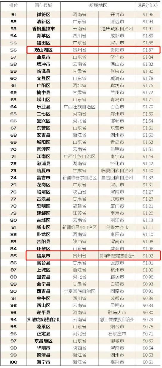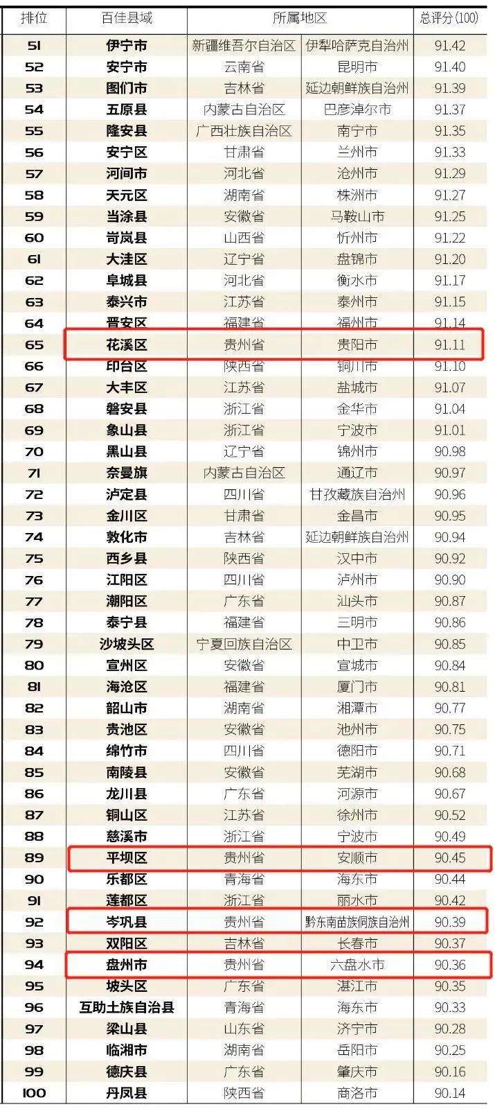 近期,由中共中央机关刊《求是》主管主办的《小康》杂志社联合多个国家权威部门和专业机构,面向中国县城或基层行政单位,开创“百县榜单工程”,推出“2020中国最美乡村百佳县市”“2020中国最具幸福感百佳县市”榜单。其中,贵州省黔西南州兴义市、毕节市纳雍县、贵阳市花溪区、安顺市平坝区、黔东南州岑巩县、六盘水市盘州市上榜“2020中国最美乡村百佳县市”;六盘水市盘州市、贵阳市观山湖区、黔南州福泉市上榜“2020中国最具幸福感百佳县市”。