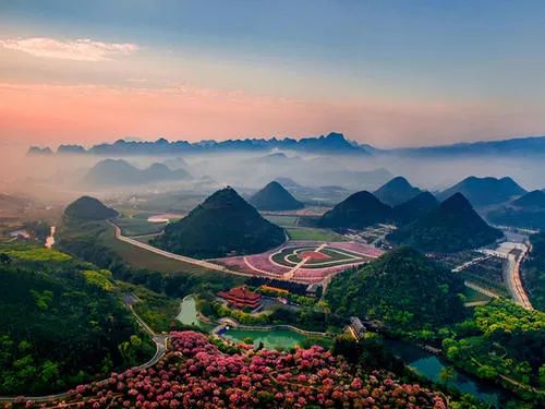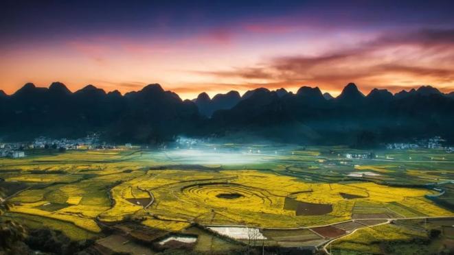 秋季来贵州,带你去兴义看看万峰林。一到秋天,这里黄绿相间的田野成片。金黄的稻田点缀了富有韵律的线条,在大地上一圈一圈地编织出奇妙无比的八卦图案。