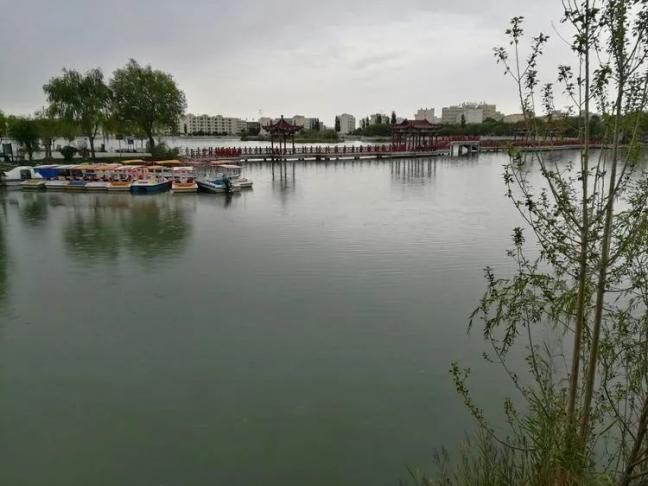 放眼望去,湖面碧波荡漾,风景秀美,迷人的景色不愧为玉门市亮丽的一道风景线。