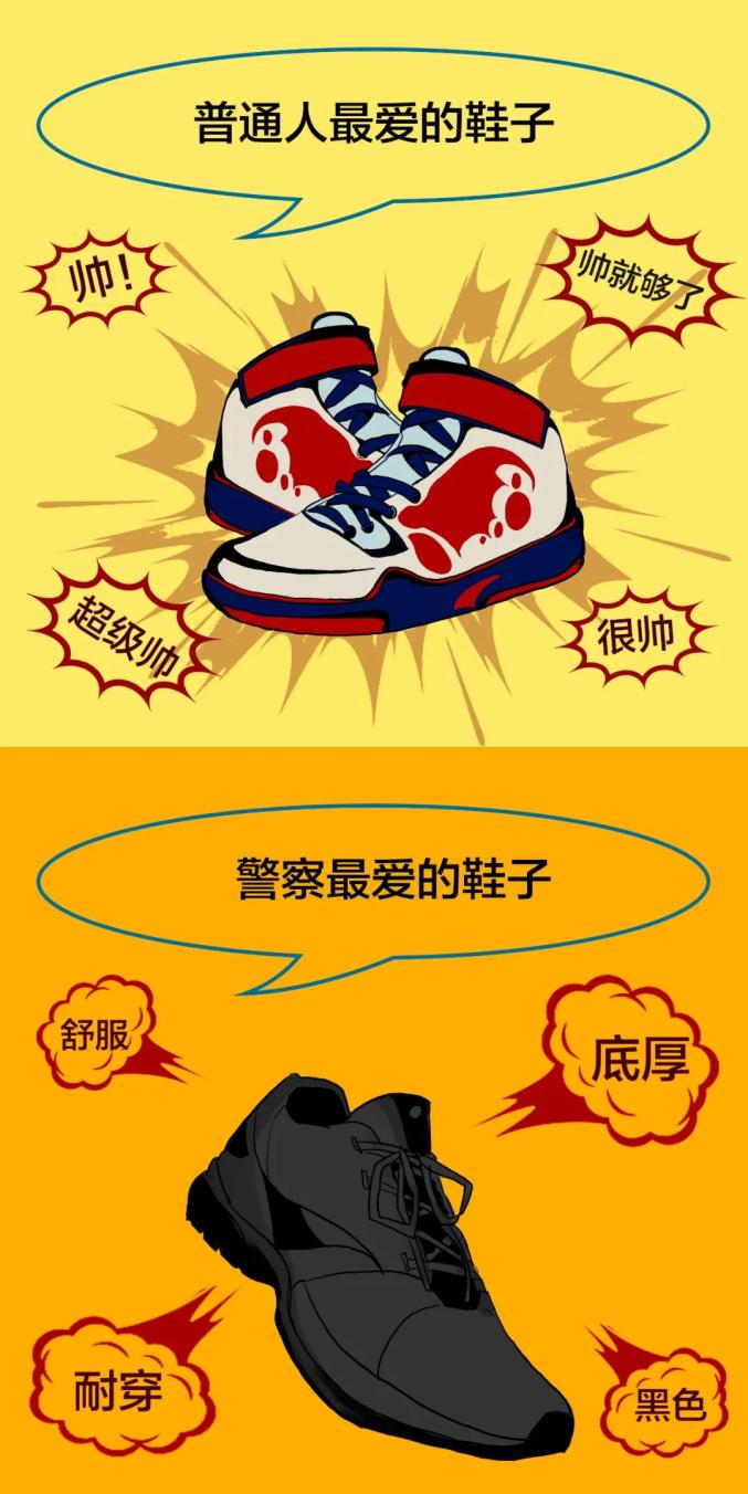一双纯黑色的运动式皮鞋是每个警察的标配巡逻 执勤 抓犯人