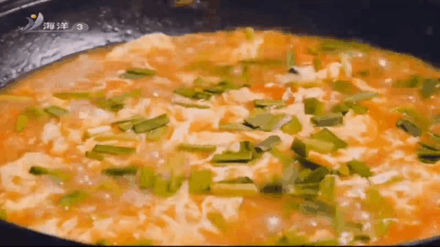 4.摇晃着下入疙瘩,随后再加点盐,转圈淋入鸡蛋,最后关火,加入蛤蜊肉,再来点茼蒿末。