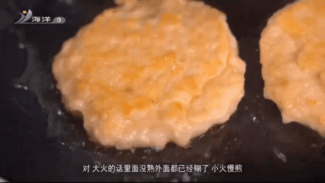 4.小火慢煎,煎一两分钟之后翻面,两面都煎成金黄色就可以了。