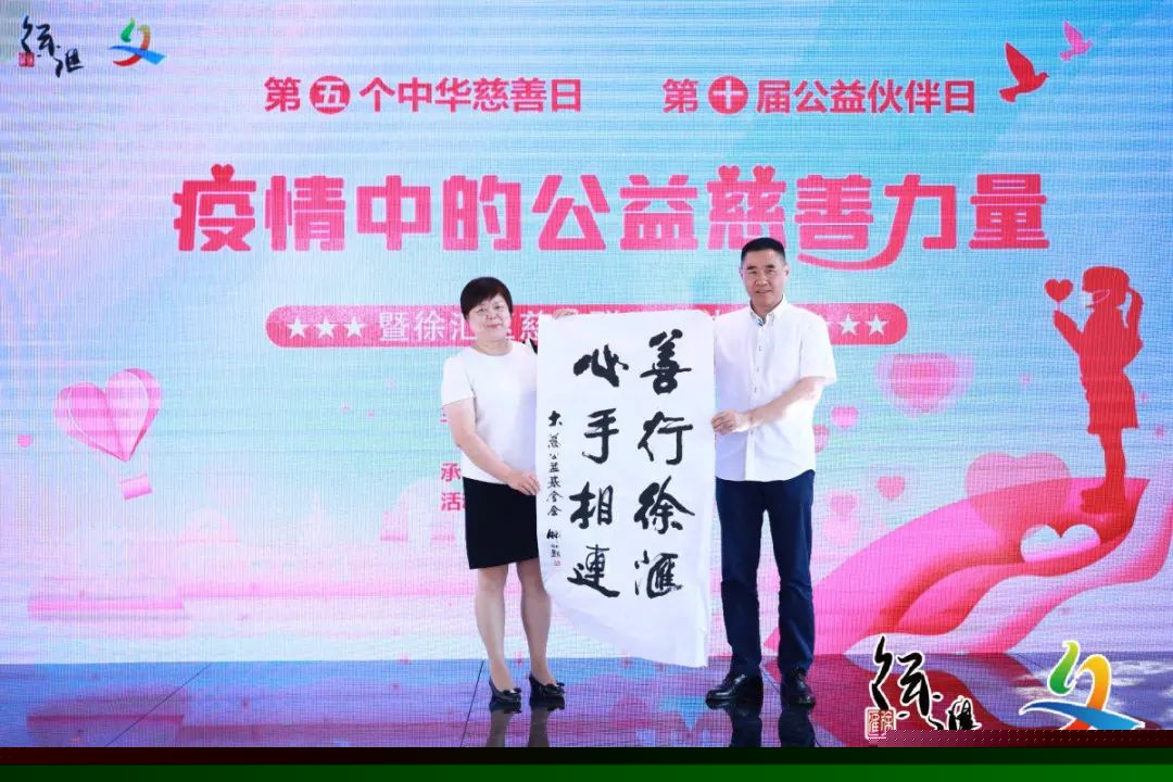 活动现场进行了公益伙伴抗疫纪念证书颁发和慈善书画作品捐赠仪式。中国美术家协会委员、上海市美术家协会理事、上海大慈公益基金会名誉主席、著名画家韩敏老先生向上海市慈善基金会徐汇代表机构捐赠书法作品。