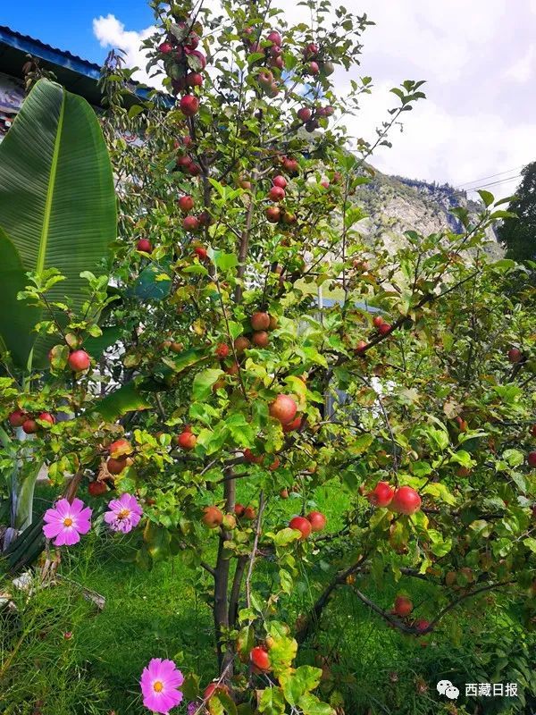 “现在生活好了,红得发紫!”一见面,46岁的娘姑就拉着我们参观她的果园,这可是她的“宝贝”。“快尝尝苹果,嘎嘣脆,甜滋滋,营养丰富,美容养颜。”娘姑一边乐呵呵地介绍着,一边麻利地从苹果树上摘下苹果。
