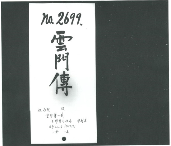 美国国会图书馆制作“北平图书馆微缩胶片”《云门传》封面,胶卷号:2699。