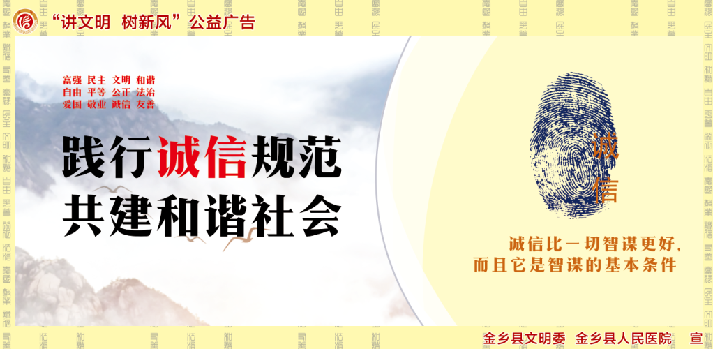 近日,记者走进金乡县人民医院大门,首先看到门诊大厅LED大屏正滚动播放着社会主义核心价值观等公益广告。在医院各个电梯口、走廊等显著位置均设置有明显的便民指引标识,社会主义核心价值观、创建全国文明城市等公益宣传广告和标语布置精美、错落有致。