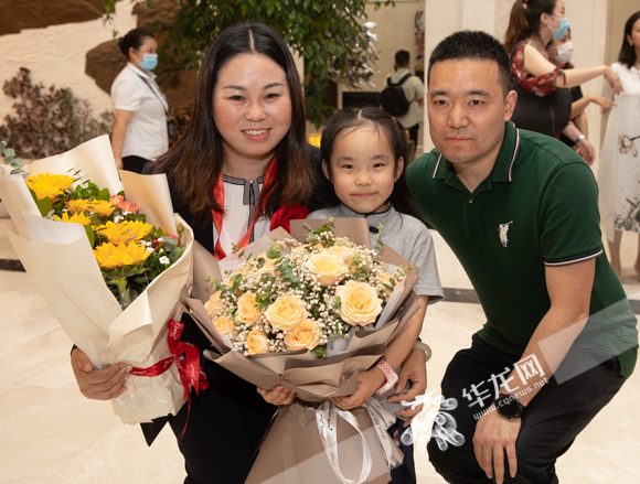 九龙坡区渝州路街道科园一路社区网格员范乔娟的丈夫和女儿赶到机场迎接她。华龙网-新重庆客户端记者 张质 摄