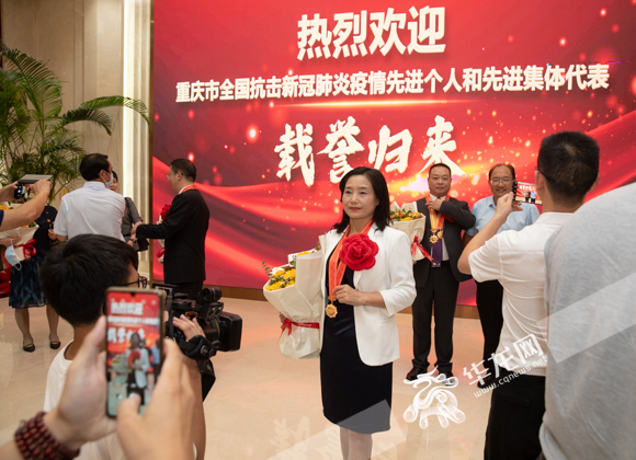 重庆市全国抗击新冠肺炎先进个人先进集体代表载誉归来。华龙网-新重庆客户端记者 张质 摄