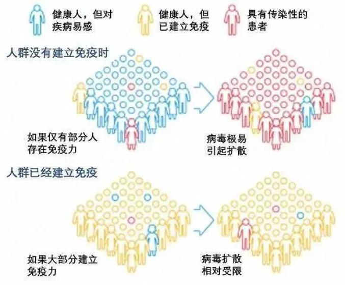 群体免疫说得直白一点,就是面对某种无法控制的传染病,不采取措施去控制,任由其蔓延下去,患上疾病的人扛住了就继续生存,抗不下去就去世。这是一种较为消极的应对方法,可以称之为适者生存。