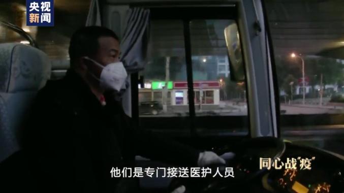 群众:我觉得我的城市并没有停下来,只是它的脚步很慢而已。他们是专门接送医护人员上下班的班车司机。