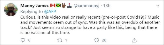 “这个视频是真的?是最近的视频(疫情之前还是之后的)?音乐和动作似乎不同步。是重新添加的音频?这样的派对太奇怪了,毕竟现在还没有疫苗。”当然,也有人愿意站在公正的立场上说话。