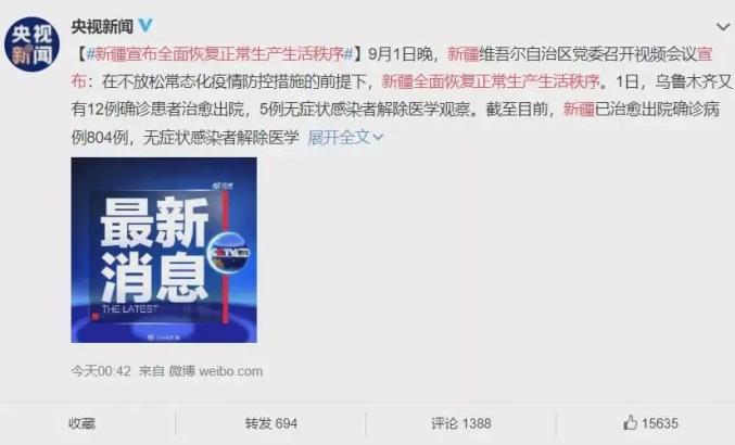 9月2日凌晨,新疆也宣布全面恢复正常的生活秩序啦!