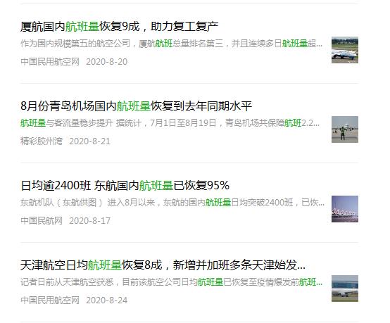随便翻翻新闻,各个航空公司的航班量也都恢复到90%以上了。