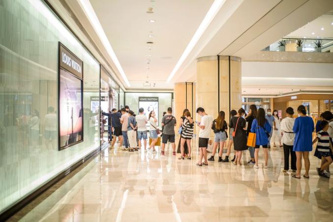 但是你走上街头,才发现女人的嘴,真是骗人的鬼。上午十一点,排队买LV的人,已经拉满店门一圈。甚至在队伍中间,也有人拿手机在记录当下人从众的盛况。